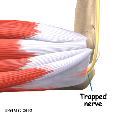 Cubital tunnel syndrome has several possible causes. Part of the problem may lie in the way the elbow works. The ulnar nerve actually stretches several millimeters when the elbow is bent. Sometimes the nerve will shift or even snap over the bony . (The medial epicondyle is the bony point on the inside edge of the elbow.) Over time, this can cause irritation.
