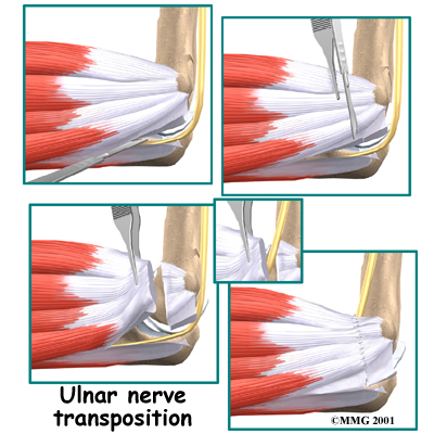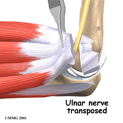 One method is called . In this procedure, the surgeon forms a completely new tunnel from the flexor muscles of the forearm. The ulnar nerve is then moved (transposed) out of the cubital tunnel and placed in the new tunnel.