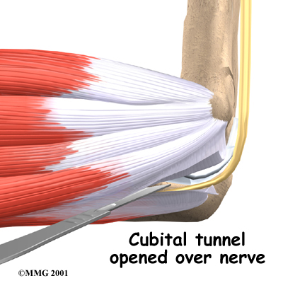 The goal of surgery is to release the pressure on the ulnar nerve where it passes through the cubital tunnel. There are two different kinds of surgery for cubital tunnel syndrome. It is not clear whether one operation is better than the other.