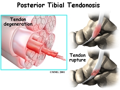 Problems with the posterior tibial tendon seem to occur in stages. Initially, irritation of the outer covering of the tendon, called the paratenon, causes paratendonitis. This means that there is inflammation between the lining of the tendon and the tendon itself where it runs through the tunnel behind the medial malleolus. This tendonitis can start a process of wear and tear on the tendon fibers.