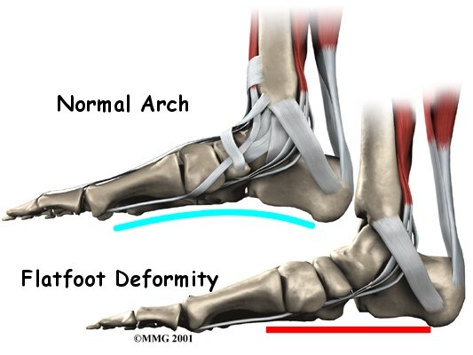 Multiple factors can contribute to posterior tibial tendon problems. Patients with flat feet are at a higher risk of having a posterior tibial tendon problem because of the persistent stretch on the tendon. Having flat feet can contribute to posterior tibial tendon problems, but conversely, posterior tibial tendon problems can lead to the medial arch of the foot dropping causing a flat foot.