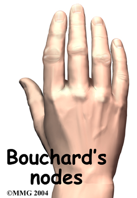 Both forms of arthritis can cause enlarged areas over the back of the PIP joints. These areas tend to be sore and swollen. They are known as .