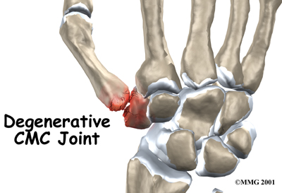 The treatment of degenerative arthritis of the CMC joint of the thumb can be divided into the nonsurgical means to control the symptoms and the surgical procedures that are available to treat the condition. Surgery is usually not considered until the symptoms have become impossible to control without it.