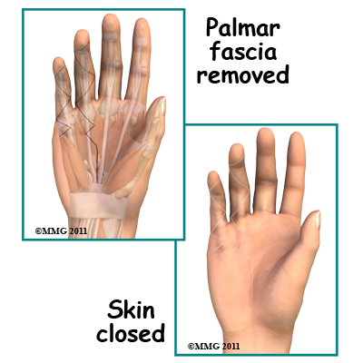 The goal of tissue release surgery is to release the fibrous attachments between the palmar fascia and the tissues around it, thereby releasing the contracture. Once released, finger movement should be restored to normal. If the problem is not severe, it may be possible to free the contracture simply by cutting the cord under the skin. If the palmar fascia is more involved and more than one finger is bent, your surgeon may take out a large portion of the sheet of fascia.