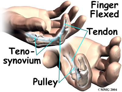 Trigger finger and trigger thumb are conditions affecting the movement of the tendons as they bend the fingers or thumb toward the palm of the hand. This movement is called flexion.