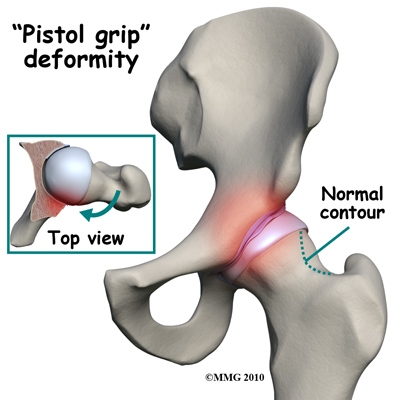 It's even referred to as a pistol grip deformity. The femoral head isn't round enough on one side (and it's too round on the other side) to move properly inside the socket.