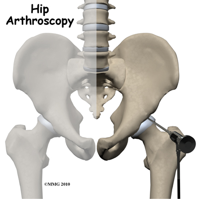 A hip arthroscopy is a procedure where a small video camera attached to a fiber-optic lens is inserted into the hip joint to allow a surgeon to see the joint and do work on the joint without making a large incision. Arthroscopy is now used to evaluate and treat orthopedic problems in many different joints of the body. While not as common as arthroscopy of the knee and shoulder, hip arthroscopy is used to evaluate and treat certain problems affecting inside the hip joint and the area just outside the hip joint.