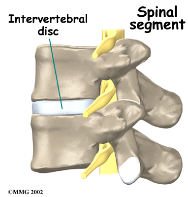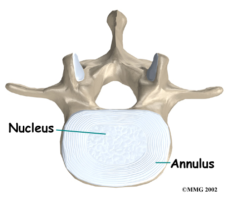 The disc normally works like a shock absorber. It protects the spine against the daily pull of gravity. It also protects the spine during strenuous activities that put strong force on the spine, such as jumping, running, and lifting.