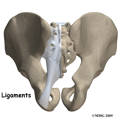 Several large, very strong ligaments hold the SI joint together. The strongest ligaments are in the back of the joint outside of the pelvis. The pelvis is a ring shape so these ligaments work somewhat like the hoops that hold a barrel together. The joint shape and the ligaments are one component in keeping the joint stable; the other component is the force of the muscles. If the ligaments are torn, the pelvis can become unstable.