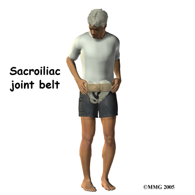 Unfortunately, few muscles actually connect to both the sacrum and the pelvis and therefore although you strengthen the weak muscles, stabilizing the SI joint completely can be more difficult in comparison to stabilizing other joints. Your SI joint may continue to move relatively more than normal and cause you ongoing discomfort with certain activities or when your muscles get tired. To combat this overall increased motion and to aid in alignment your therapist may suggest that you use a SI belt to help stabilize the joint. An SI belt is worn over the SI joints and around the hip area to help compress the joint together in order to create increased stability. Wearing an SI belt can often ease pain during activity and allow you to exercise comfortably. Many pregnant women find these belts particularly helpful. Using tape on the SI joint area, hips, and low back can also help to ease some of your pain, so your therapist may try doing this either before suggesting a belt, or in conjunction with doing so.