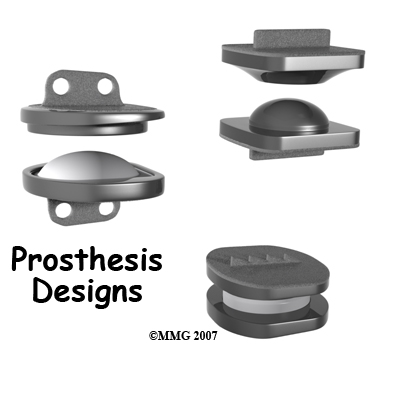 The lumbar artificial disc replacement comes in a variety of sizes and angles. There are constrained and unconstrained designs. The constrained devices provide a fixed center of rotation that doesn’t change. The unconstrained design allows the center of the implant to move forward and back slightly during lumbar motion. The surgeon can also choose an implant with the correct angle for each patient in order to build in the right amount of lordosis (spinal curvature).