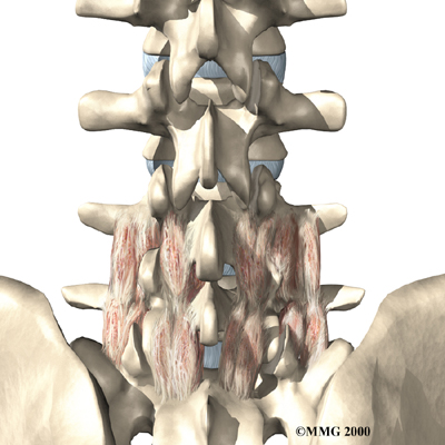 Surgeons perform this procedure through an incision in the low back. The incision reaches to the , the bony projections off the back of the vertebrae. The surgeon must move aside the muscles along the spine, called the paraspinal muscles. The fusion itself involves the lamina bone, the protective roof over the back surface of the spinal cord. In some cases, the surgeon may enlarge the neural foramina, the tunnels where the nerve roots leave the spinal cord.