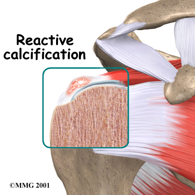 Reactive calcification is even more of a mystery. This type of problem occurs in younger patients and seems to go away nearly all by itself in many cases, although
