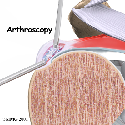 Most surgeries to correct calcific tendonitis of the shoulder are arthroscopic surgeries. The arthroscope is a special TV camera that can be inserted into the shoulder joint through a small incision in the skin. Other small incisions allow the surgeon to insert small surgical instruments into the joint as well. The surgeon uses the arthroscope to locate the calcium deposit in the rotator cuff tendon. Once the deposit is found, the surgeon uses the small instruments to resect (remove) the calcium deposits and rinse the area. Loose calcium crystals must be removed. They can be very irritating to the surrounding tissues.
