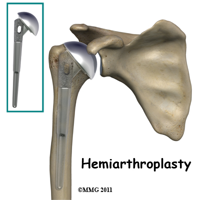 Joint replacement is used for more severe damage of the joint. A hemiarthroplasty (partial replacement) may be all that's needed when only one side of the joint has been affected. Full joint replacement is reserved for patients with significant involvement of both the humeral head and the glenoid fossa (socket).