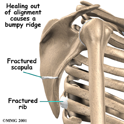 Changes in the alignment or contour of the bones of the scapulothoracic joint can also cause snapping scapula. When a fractured rib or scapula isn't lined up just right, it can cause a bumpy ridge that produces the characteristic grind or snap as the scapula moves over the chest wall.