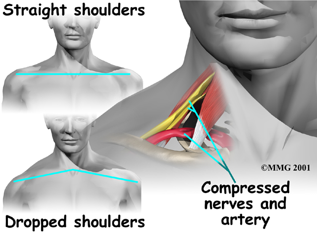 People with TOS often slouch their shoulders, giving them a drooped appearance. The