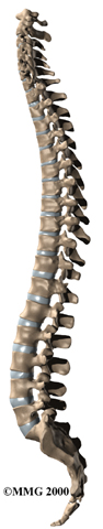 A good way to understand the anatomy of the cervical spine is by looking at a spinal segment. Each spinal segment includes two vertebrae separated by an intervertebral disc, the nerves that leave the spinal cord at each vertebra, and the small facet joints that link each level of the spinal column.