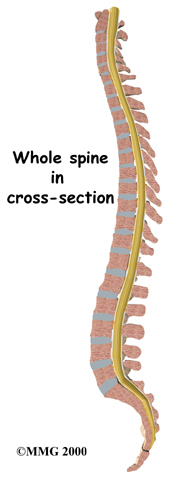 The hollow tube formed by the bony ring on the back of the spinal column surrounds the spinal cord as it passes through the spine. The spinal cord is a similar to a long wire made up of millions of nerve fibers. Just as the skull protects the brain, the bones of the spinal column protect the spinal cord.