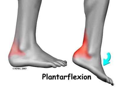 occurs in the back of the ankle. It is most common in ballet dancers who must continually rise up on their toes, pointing their foot downward into extreme plantarflexion. Other athletes are rarely affected but may have problems if they routinely plantarflex their feet.