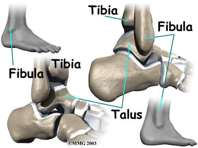 Most joints in the body are synovial joints. Synovial joints are enclosed by a ligament capsule and contain a fluid, called synovium, that lubricates the joint. The ankle syndesmosis sits next to the , where the tibia meets the talus bone.