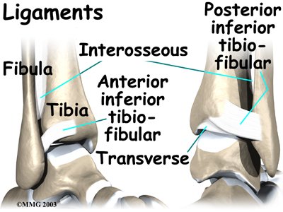 Mild syndesmosis sprains usually involve a stretch or slight tear in only one of the ligaments making up the syndesmosis. Moderate tears of the ankle syndesmosis may lead to ankle joint instability, which make the ankle mortise loose. In severe tears of the ligaments, the ends of the tibia and fibula actually spread apart. This condition is called diastasis.