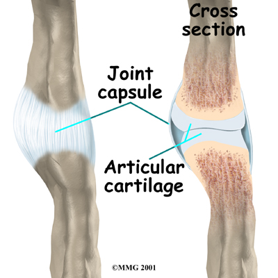 Ligaments are tough bands of tissue that connect bones together. Several ligaments hold the joints together in the finger. These ligaments join to form the joint capsule of the finger joint. The joint capsule is a watertight sac around the joint. The joint surfaces are covered with a material called articular cartilage. This material is the slick, spongy material that allows one side of a joint to slide against the other joint surface easily. When this material wears out, the joint develops a type of arthritis called osteoarthritis and becomes painful. Rheumatic arthritis is a different form of arthritis (which develops due to an autoimmune disorder and is more widespread in the body) but can also cause wearing out of the joint surfaces and also deformity of the joints.