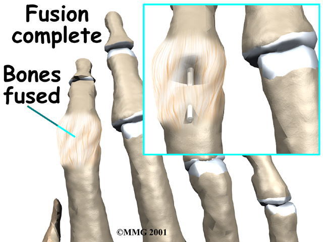 Sometimes the finger bones do not fuse as planned. This is called a nonunion, or pseudarthrosis. (Pseud means false, and arthro means joint; a pseudarthrosis refers to the motion at a false joint.) If the motion from a nonunion continues to cause pain, you may need a second operation to try to get the bones to completely fuse. This may mean adding a bone graft and making sure that any metal pins that have been used are holding the bones still to allow the fusion to occur.