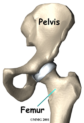 The surface of the femoral head and the inside of the acetabulum are covered with articular cartilage. This material is about one-quarter of an inch thick in most large joints. Articular cartilage is a tough, slick material that allows the surfaces to slide against one another without damage.