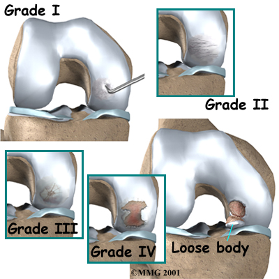 Despite the difficulties, reattaching the fragment generally results in much better knee function than removing it. Your knee will not be as good as new, but a careful plan of exercise and follow-up care can help you use your knee again without pain. Allograft Transplant In rare cases, the lesion must be removed from a weight-bearing area. Your surgeon may try to fill in the hole using an allograft. An allograft is an actual transplant of bone and cartilage from a donor into your knee. The bone is usually obtained from a bone and tissue bank. In this case, bone material is transplanted into the hole left in the bone. Allografts have risks, including graft rejection and infection. But they can be very successful in returning function to the knee. Osteochondral Autograft An autograft is a procedure for grafting tissue from the patient's own body. The place where the graft is taken is called the donor site. In this case, surgeons graft a small amount of bone (osteo) and cartilage (chondral) from the donor site to put into the lesion. Usually, the donor site for this procedure is on the joint surface of the injured knee. Surgeons are careful to take the graft from a spot that won't cause a lot of problems, usually on the top and outside border of the knee cartilage. Even then, people sometimes end up with problems around the donor site. Surgeons have gotten good results with this surgery, but it is challenging to contour the graft to be just the same shape as the covering of the joint. Autologous Chondrocyte Implantation A new technology called autologous chondrocyte implantation is currently being developed. It involves using cartilage cells (chondrocytes) to help regenerate articular cartilage. This technology looks promising for treating JOCD and OCD but is still very much experimental. Related Document: Active Therapeutic Solutions Guide to Articular Cartilage Problems of the Knee Portions of this document copyright MMG, LLC. |