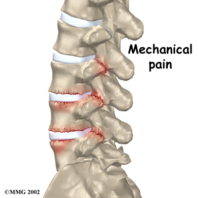 The main goal of the spinal fusion (also known as an arthrodesis) is to stop movement of one or more vertebrae. Keeping the fused section from moving helps stop mechanical pain. Mechanical pain occurs when damaged discs and joints that connect the vertebrae become inflamed from excessive motion between the vertebrae. This type of pain is commonly felt in the low back and may radiate into the buttocks and upper thighs.