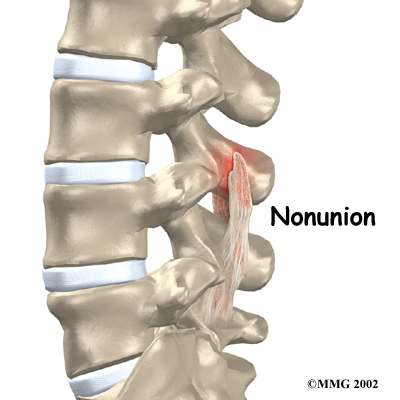 Sometimes the bones do not fuse as planned. This is called a nonunion, or . (The term pseudarthrosis means false joint.) When more than one level of the spine is fused at one time, there is a greater chance that nonunion will occur. Fusion of more than one level means that two or more consecutive discs are removed and replaced with bone graft. If the joint motion from a nonunion causes pain, you may need a second operation.