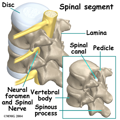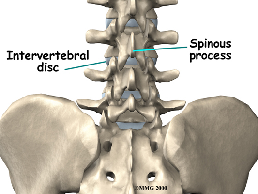 This surgery is done through an incision in the low back. The incision reaches to the spinous processes, the bony projections off the back of the vertebrae. A large block of bone, called the vertebral body makes up the front section of each vertebra. The vertebral bodies are separated by a soft cushion called an intervertebral disc.