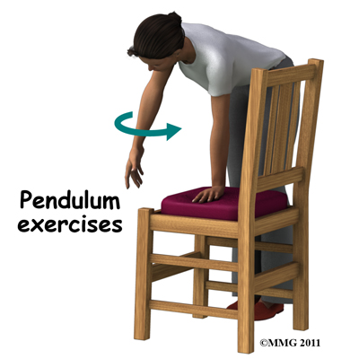 from the shoulder muscles. The exercise should look similar to a weighted pendulum that randomly swings gently on the end of a piece of string.