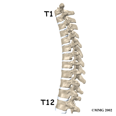 The section of the spine found in the upper back is called the thoracic spine. It goes from the base of the neck to the bottom of the rib cage. Knowing the main parts of the thoracic spine and how these parts work is important as you learn to care for your back problem.