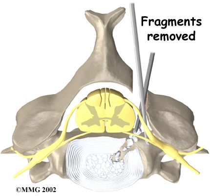 The degenerative process can also cause bone spurs to develop and point into the foramen, causing further irritation. In a foraminotomy, the surgeon removes the tissues around the edges of the foramen, essentially widening the opening in order to take pressure off the nerve root.