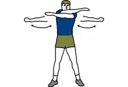 Dynamic stretching. Gradually the speed and intensity of your movement is increased. See below for stretches which should be performed out of the water.